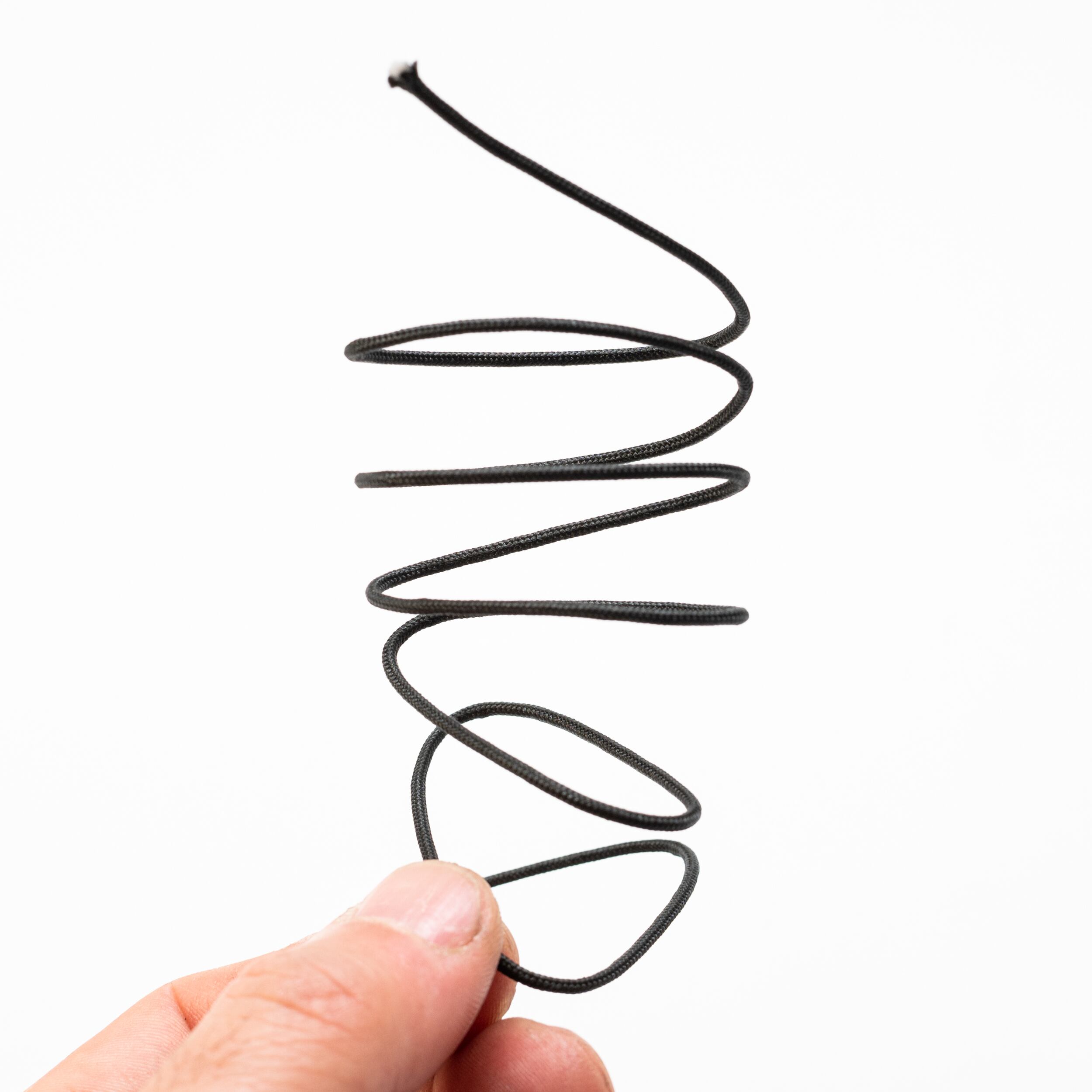 ダイニーマは炙ると広がり末端処理がしにくい素材ですが、ライターで炙って黒いポリエステルカバーで囲むようにすることで処理できる使いやすさも魅力です。