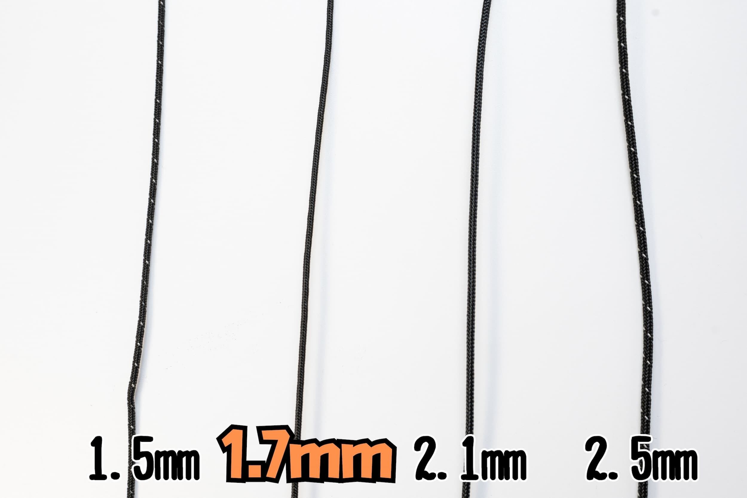 やや細めなΦ1.7mmですが、ソロ-デュオ程度の軽量テントやタープなら問題の無い耐久力があります。